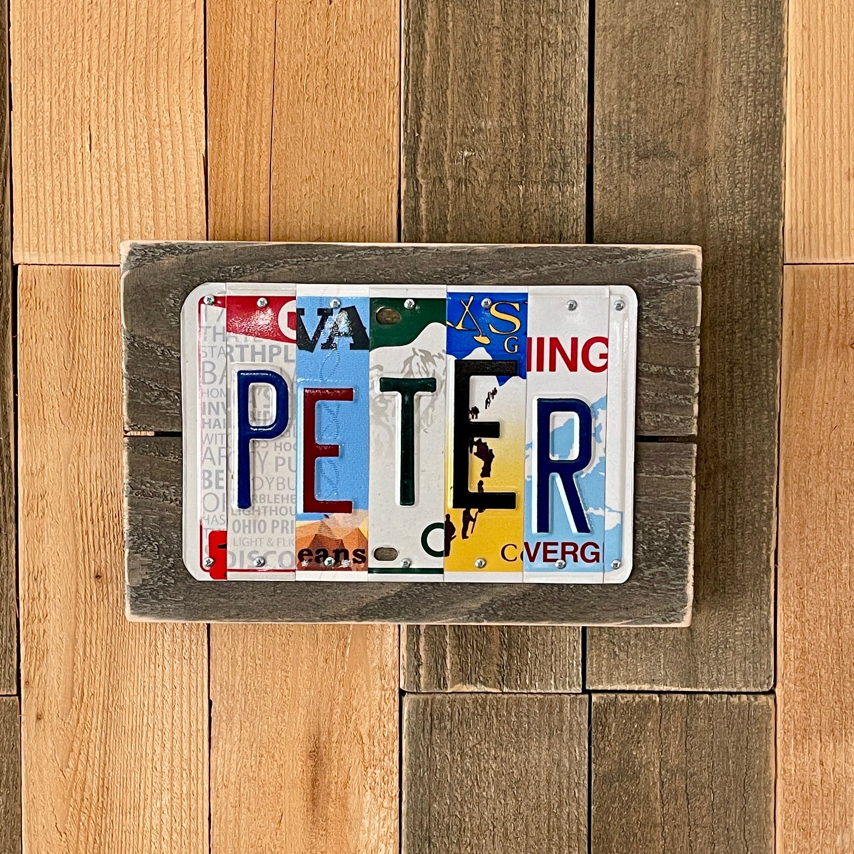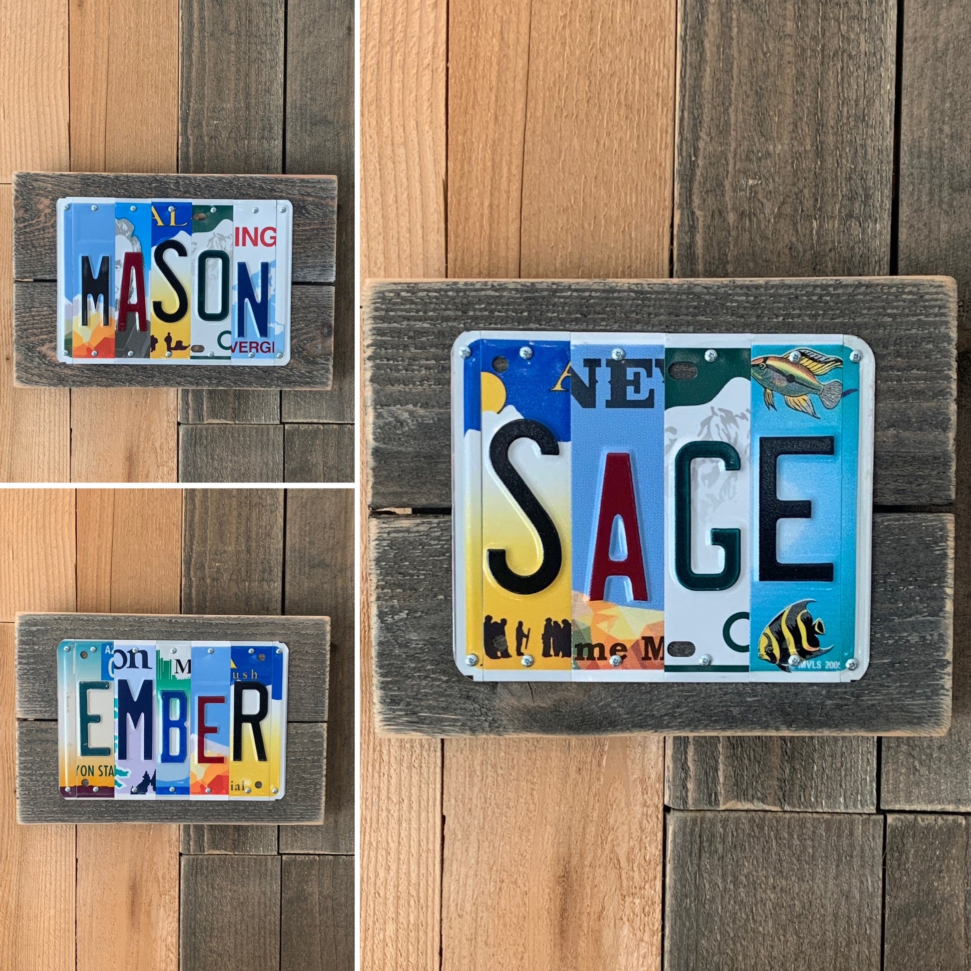 Our process: Each license plate is hand chosen, hand scrubbed (Montana wins for the stickiest bugs), hand cut, and attached with screws to a handmade aged cedar wood plaque that consists of 4 wood pieces. Since wood reacts to the aging process differently, please expect each plaque to similar, but not identical, to the one shown. Each wood plaque is sanded on all sides. We have chosen cedar for our wood plaques because it is durable outdoors, it is native to Washington state making it easily accessible, and it has a nice grain and knotting which lends to the "rustic/repurposed" feel we are going for.